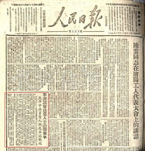 4.1949年2月28日,《人民日報》關(guān)于李濟深等民主人士由沈陽抵達北平的報道