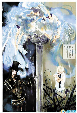 黃山的COSPLAY 作品與純粹模仿動漫角色的舞臺COSPLAY不同,他的作品是平面的:原創故事、原創角色。由他本人扮演這些或華麗、或詭異的角色,通過拍攝、后期合成再還原到紙上,產生虛實相間的視覺效果。“我希望走出一條COSPLAY 與原創漫畫結合的新路”。他這樣對記者說。