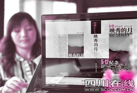 “你好,我是周紅令!毕挛2點,周紅令帶著筆記本電腦出現在記者面前,她蓄著優雅的長卷發,素雅的條紋襯衫剪裁合身。在成都鬧市,她有兩家玉石門市,是個有些小資的女老板。周紅令打開電腦,已經排好版的作品《映秀的月》快速閃過,一張地震時渾身是泥的照片,讓她有些羞赧。