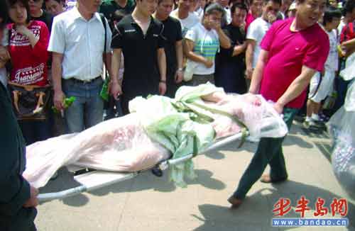 一男子全身裸露,被裝在一個透明塑料袋里,周圍還散發著一股臭味!5月24日中午12時30分許,在臺東三路步行街逛街的市民發現街上躺著一具全裸“男尸”,趕緊報了警。110民警趕到現場發現這名男子還有呼吸,便趕緊撥打120將其送往醫院?闪钊讼氩坏降氖牵@具“男尸”在被送到醫院后,竟然自己撕掉身上的塑料袋后穿衣跑了。事后大家才知道,這是一名男子在表演行為藝術。