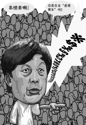 還有網友認為,易中天在地震后第一時間在博客上說自己捐了款,為此,網友也心存疑問:“真捐了嗎?我也可以懷疑你啊,甚至可以懷疑每一個捐款的人。”該網友還提出,地震的時候有很多人含淚捐款,那是不是也要問這些人要證據、發票或者收據?“易老師想檢查全國人民嗎?你是在坐‘道德賽車’。”