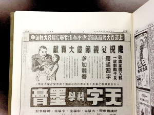 還是在同一張報紙上,當天還刊登了一則以《慶祝父親節偉大貢獻》為大標題的1/3版廣告。這是一家墨膏廠的廣告,副標題為《敬請全國父親一致鼓勵子女晨起習字》,發動“父親節書法競賽活動”。可見,利用節日促銷商品的歷史由來已久。