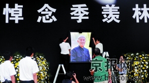 北京林業大學計算機系大一學生宋婷婷一大早就從學校趕來,她手拿著相機,希望記錄下送別季老的最后一刻。“我是季先生的老鄉,一直特別崇拜季老,覺得他是一位可敬可愛的大師。”河南的大學生小張暑期來北京打工,今天也特地從朝陽趕到了北大。“太震驚了,季老師的人格、學問和愛國心一直深深感染著我,昨天聽到他去世了,我一晚上都沒睡著,重新看了遍他的《牛棚雜憶》。”說這話時,小張的眼圈紅了。他說,季先生是自己的偶像,季先生曾經替北大學生看行李的事跡讓他甚是感動。山西的賈先生今天特地從老家趕到北京來送別季老,“愿他一路走好,他永遠是我們心中的大師。”