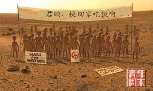 網(wǎng)友繼續(xù)為原本無意義的水帖“增加”意義,帶有“賈君鵬”字樣的PS圖片相繼誕生,有網(wǎng)友在易中天《百家講壇》的照片下方寫,“大家好,我是賈君鵬的班主任”,也有網(wǎng)友在一群外星人舉旗的照片中PS上“賈君鵬你媽媽喊你回家吃飯”的標識,或者讓這幾個字出現(xiàn)在《新聞聯(lián)播》的字幕中,賈君鵬成了無所不在的符號,終極的指向是一場集體無意識的搞笑和樂子。