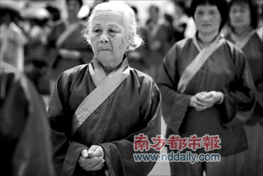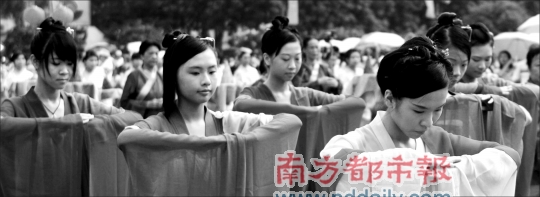 “每走一步、袖子怎么擺動(dòng),都有講究。”廣東省民俗文化研究會(huì)副秘書(shū)長(zhǎng)、珠村民俗專家潘劍明是儀式主持,他透露,此次演出專門(mén)請(qǐng)來(lái)“漢禮”專家按歷史傳統(tǒng)還原場(chǎng)面。