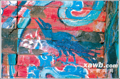 這座西漢壁畫墓的保護到底有多困難?曾擔任西安交通大學西漢壁畫墓考古隊長的呼林貴研究員分析了壁畫保護困難的原因,原來漢代墓葬中的壁畫和唐代的有很大不同,唐墓壁畫,往往先在墻上刷過很多層泥子,“底子”很厚,所以唐代壁畫容易揭取,而漢代壁畫的“底子”都很薄,呼先生指著西安交大漢墓壁畫的圖片說:“從照片上就可以看出,泥子只是在磚墻上薄薄地上了一層,然后在上面直接作畫。”看來,揭取式保護并不適用于交大漢墓壁畫。今年4月11日,韓城宋代壁畫墓曾被整體搬遷,那么交大漢墓是否也能用這樣的辦法來保護?呼先生說:“經過兩千多年的擠壓,組成交大漢代壁畫墓的磚塊酥化很嚴重,從壁畫上的龜裂就可以看出來。”如此脆弱的墓葬,輕微的晃動都能使它變形,甚至坍塌。