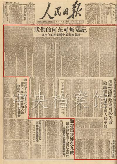 1949年8月5日,美國國務院發表了《美國同中國的關系》白皮書。毛澤東對此十分重視,認為是用來教育中國人民的一次極好機會。8月12日至9月16日,毛澤東先后為新華社撰寫了六篇社論,包括《無可奈何的供狀——評美國關于中國問題的白皮書》、《丟掉幻想,準備斗爭》、《別了,司徒雷登》、《四評白皮書——為什么要討論白皮書》、《五評白皮書——“友誼”還是侵略》、《六評白皮書——唯心歷史觀的破產》。這些社論揭露了美國對華政策的帝國主義本質,指出白皮書“是一部顛倒黑白的‘杰作’”,“是美帝國主義反動政策在中國慘敗的史冊”,批評了國內一部分資產階級知識分子對美帝國主義的幻想,號召他們“丟掉幻想,準備斗爭”。社論還論證資產階級共和國方案在中國的破產,對中國近代革命的發生和中國革命的勝利,作了理論上的說明。這些社論發表后,引起了全國各民主黨派、各人民團體、各報社、各學校以及各界人士的關注和討論,掀起了譴責美國白皮書的熱潮。