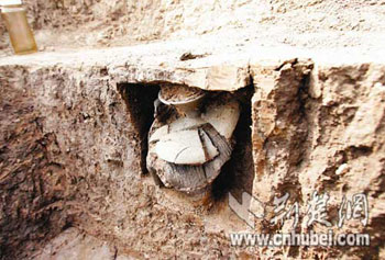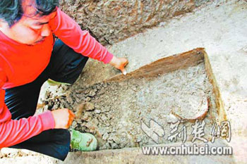 昨(23)日,在距襄樊高新區韓崗村的韓氏家族墓葬一百多米處,考古人員經連日發掘又發現了一批墓葬,初步判斷這些是春秋時期的鄧國墓葬。