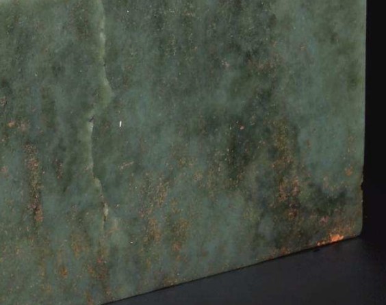 李教授現為江蘇省書畫鑒定小組主任委員,他潛心研究篆刻三十多年,他向記者介紹:清代乾隆二十五年后時玉器制作進入玉器史上的鼎盛期,而在玉器質地的選料上,都是由新疆大吏搜羅開采頂級的上品而充貢內廷。而且皇帝玉璽成品都很規整,幾乎做到玉璽無筋、無柳、無瑕,用于制作玉璽都為最好的肉質,開料與玉璽制成的比率很低,原料的浪費極大,為的就是選料的純靜,美玉良工以確保玉璽的精美度,而此次拍賣的乾隆“八徵耄念之寶”青玉璽,目鑒便知玉質上有大片的柳絮紋。(圖一)玉質當屬普通青玉料,皇家玉璽是不會選這種檔次的玉料制作的!