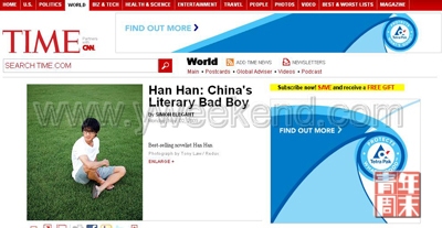 最新一期美國《時代》周刊亞洲版,聚焦中國文壇80后作家——韓寒。《時代》刊登的這篇文章的標題把韓寒定義為“中國文壇的壞小子”。