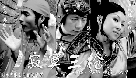 近日,文殊坊一牌坊內,一群身著奇特服裝的年輕人引來不少游人注目。女子身著紗裙,高挽的發髻上別著一個橘紅色的咖啡勺;一男子頭上纏著粉色紗巾,一身粉色長袍內配一件繡著牡丹的肚兜,腰間系著一條金黃色的抹布;另一男子頭戴鋼盔,身著盔甲,手持長劍,外表冷峻。不少路人議論紛紛,稱這些造型好眼熟。原來,這是成都草根劇組正在拍攝《寂寞三槍》,而這實際上也是今年《寂寞春晚》中的一個節目———《蝸居時代的愛情故事》,在視頻的結尾,“李四”模仿小沈陽的口氣邀請大家:親愛的賈君鵬們,你們準備好了嗎?歡迎到“寂寞春晚”吃年夜飯。目前,拍客已經把這段《寂寞三槍》的拍攝視頻發到了網上,引起了網友們的極大興趣,點擊率很高。對這個節目,KoKo只神秘地透露了一句話:3個人窩到一起居住,又是三角戀,結果可想而知了!顿Z君鵬的團圓飯》是一個互動參與的節目,劇組會事先把菜單設計好,參與的人分成小組搶菜單,看誰拼出的團圓飯菜單最好。當然,搶菜單并不是一件簡單的事,如果搶到的全都是湯,那么今年就“泡湯”,如果搶到的全都是菜,那么今年就“歇菜”。《釣魚之法》也是一個互動小游戲,用魚鉤去釣酒瓶里邊的小字條,字條上有一個手機號碼,釣到就可以打,電話號碼是觀眾進場時就留下的,到時候會打通誰的電話就看緣分了。魔術《不差錢》會有一個魔術師不停變“錢”出來,游戲《甲骨文》將邀請觀眾用甲骨文碎片拼出一句和愛情有關的話,就像《風聲》里面破譯摩斯密碼一樣,會非常有趣。