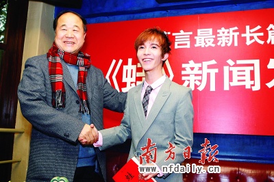 莫言:不是所有作家都得去寫農民工,去寫底層生活這些現實題材,這樣文學不是太單調了嗎?你不能說這些網絡文學不是文學,我們常說文學要百花齊放,不是每個作家都需要有那么深的底蘊,這些網絡寫手寫出來的文學可能不符合嚴肅文學的定義,你可以不喜歡它,但是不能干預它,當然,現在也沒有人能干預得了網絡文學的發展。