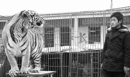 成熟的老虎僅有兩三歲兒童的智力,馴虎不能急于求成。胡敬才說(shuō),再好的馴虎人也需要數(shù)月的情感磨合,否則不可能和老虎建立“朋友關(guān)系”。為贏得老虎的“芳心”,馴虎人每天要和老虎在一起待六七個(gè)小時(shí),每周要給老虎改善生活,豬肉、羊肉、牛肉等一應(yīng)俱全,夏天每天中午還要給老虎“裸浴”一次,并經(jīng)常為老虎梳理毛發(fā);冬天要給老虎的籠子加蓋防凍布。