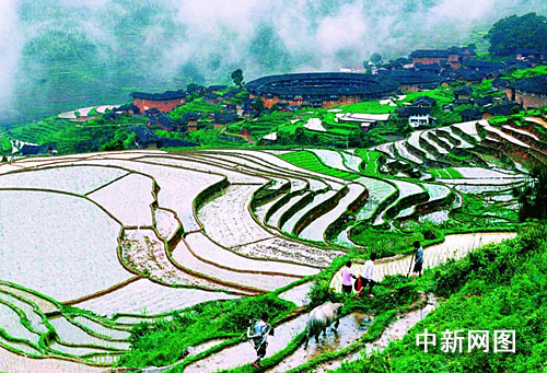 今年春節(jié)期間,中共中央總書記胡錦濤考察福建,前往參觀了被列入世界文化遺產名錄的永定客家土樓,稱贊“客家土樓是大家庭、小社會和諧相處的典范”。
