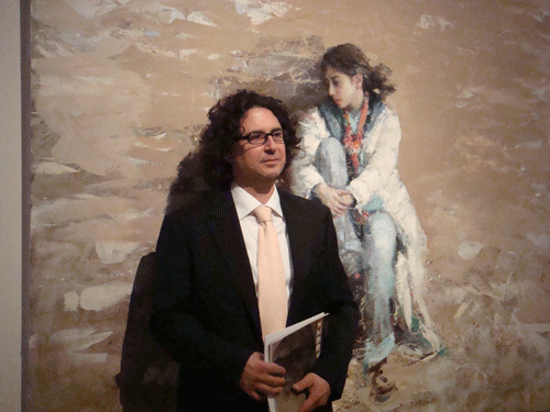9日下午,希臘藝術家瓦蓋利斯•瑞納斯的《無盡的航程Ⅲ》在中國美術館內的展覽已經進行到第四天。在開幕式上,面對擠滿美術館大廳的觀眾,瑞納斯用希臘語表達了自己的激動心情:“中國大眾對于美術表現出來的熱情令我興奮不已。”
