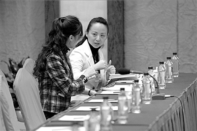 因在春晚領(lǐng)舞《千手觀音》而被百姓喜愛(ài)的聾啞委員邰麗華,每天都是第一個(gè)出現(xiàn)在政協(xié)文藝組小組討論會(huì)上。昨天下午2點(diǎn)40分,她和手語(yǔ)翻譯李琳剛一步入會(huì)場(chǎng),就開(kāi)始認(rèn)真地準(zhǔn)備素材。她坦言,開(kāi)會(huì)來(lái)得早是自身的習(xí)慣,無(wú)論什么活動(dòng)她都會(huì)提前到位。