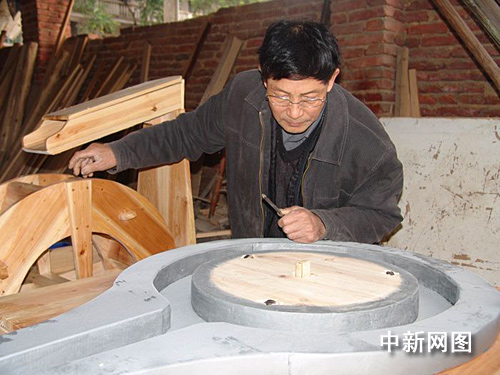涂祖奕介紹,這些“活寶”名為“水驅(qū)仿古飾物”,是他經(jīng)多年時(shí)間,在繼承中國(guó)傳統(tǒng)農(nóng)業(yè)水利設(shè)施精華的基礎(chǔ)上,匠心獨(dú)運(yùn),按照一定的比例微縮精做而成,有微型水碓、水磨、輪碾、水鋸等5個(gè)系列40多個(gè)品種,均已獲國(guó)家專利證書。
