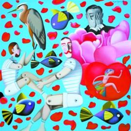 1956年出生,現為上海師范大學美術學院教授、中國美術家協會會員、中國油畫學會理事、上海美術家協會常務理事的王向明,已經是香港蘇富比的“老朋友”了,此前曾獲全國青年畫展金獎、全國美展銀獎、臺灣“隔山”大獎賽優秀獎等等,作品為中國美術館、上海美術館、福岡美術館以及海外私人收藏的他,是這次作品參與拍賣的唯一一位上海畫家,而在50多件現代拍品中,《向大師致敬·波波永遠愛心蕩漾》是蘇富比在“嚴密”關注他的創作動態的前提下,最終選中的一幅作品:“上海其實一直都有文化淵源,人才輩出,但在文化市場上卻比較弱勢,周立波的脫穎而出對我啟發很深,我們不能太謙虛,要表現強烈的海派風格,推崇上海文化、文明,這也屬于上海的藝術家之間的惺惺相惜。 ”