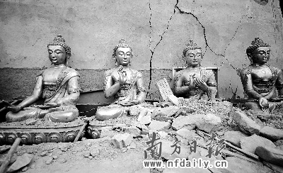 郭紅:目前我們只能從表面現象看這些文物的受損程度,還在做初步的鑒定。另外,這些受損的文物,像一些塔,都是受《文物法》保護的,我們不能隨意改動。而且一個寺院有很多建筑,有可能主經堂受到損壞,其他地方沒有損毀,這些都要具體問題具體分析。因此這些文物今后是要重建、移址重建或者修復,我們要等國家的鑒定組過來,作出詳細判斷之后才能決定。