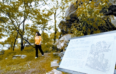 打開銹跡斑斑的門鎖,走進果園,記者看到地上一塊木牌,上書“古園林遺址(考證中……)”。再向園內看去,水池邊確有一座假山,山高四五米,山上有一棵郁郁蔥蔥的大樹,假山腹部是一個可容納六七人站立的山洞。園子的圍墻邊還能看到一座墓碑,據稱葬的是園主百名妻妾之一。除此之外,園內僅剩一座從別處整體遷移來的老宅。