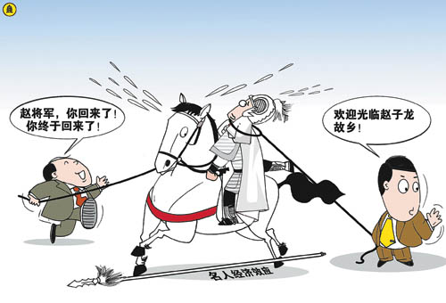 “此次趙云故里之爭,除了民間研究會外,專家和學者鮮有直接參與爭論的!笔仪f社會科學院研究員梁勇注意到,近期在全國頻發的一系列“名人故里”之爭中,學界保持冷靜,而地方政府表現卻頗為“高調”。“趙云故里之爭也不例外!彼a充說。