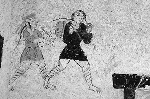 地埂坡墓群位于高臺縣河西村南3公里黑河南岸的戈壁臺地上,是河西走廊發現的又一處重要的魏晉時期墓葬群。該墓葬最大的“亮點”是:墓室內有內容豐富、技藝精湛的壁畫,表現了農耕、畜牧、宴飲等內容,出現了多個少數民族形象,這是以往河西魏晉墓中不多見的,為研究河西地區歷史、中西文化交流以及民族融合等提供了珍貴的資料。