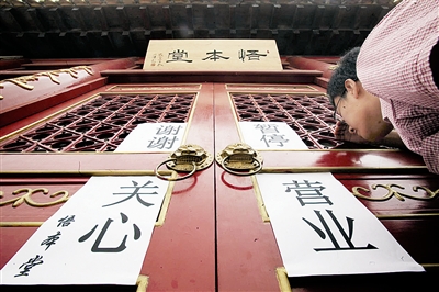 但恢復營業僅一天,今天上午9時許,位于奧體中心西南門的悟本堂卻掛出了“暫停營業,謝謝關心”的告示。