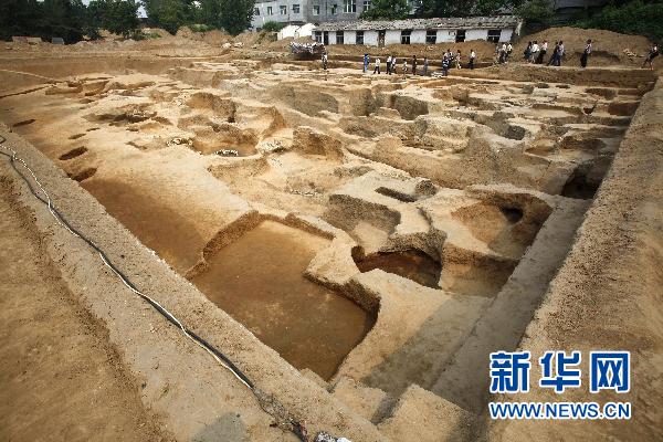 這是6月6日拍攝的洛陽市林校西周洛邑祭祀遺址的人馬組合坑。當日,河南洛陽市文物局組織專家對洛陽市林校西周洛邑祭祀遺址考古發(fā)現(xiàn)進行研討并向媒體發(fā)布了發(fā)掘成果。這處遺址西距瀍河約1公里,西北距北窯西周墓地及西周鑄銅遺址約4公里,總發(fā)掘面積為945平方米,于2009年2月開始發(fā)掘。考古人員在洛陽市林校工地共發(fā)現(xiàn)西周灰坑59座、流水溝1條、墓葬14座以及唐代灰坑42座,其中31座西周祭祀坑的發(fā)現(xiàn)是本次發(fā)掘的重要收獲,為尋找西周洛邑城址提供了又一重要線索。新華社發(fā)(張曉理 攝)
