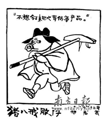 “文革”結束后,華君武出任全國美協副主席。這個時期華君武特別喜歡畫豬八戒。他認為人性中的弱點,豬八戒幾乎大都具備。上世紀80年代假冒偽劣產品出現,他揮筆創作《豬八戒敗陣》,畫中的八戒之所以敗陣,就因沒想到連他用的釘耙也是假冒偽劣產品,因而打了敗仗。因為這一系列諷刺作品,有人形容華君武的漫畫是“刀刀見血,入木三分”。