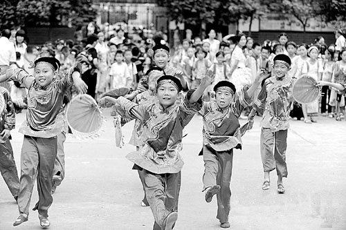 正是扎根在這樣深厚的傳統文化土壤中,“贛南采茶戲進校園”活動才有了無限生機。紅旗二小教師鐘麗華說:“現在家庭條件好了,許多孩子課余都會去學些器樂、舞蹈,但很大部分是三分鐘熱情。一方面是因為孩子們興趣還沒定型,另一方面是學習環境使然,比如要孩子去學鋼琴,許多家庭祖祖輩輩都沒摸過鋼琴,孩子學習氛圍不濃。但學采茶戲就不同,贛南許多中老年人都有采茶戲情結,能哼一段舞兩手的大有人在,像在我們學校,許多孩子學了戲回家,都是一家三代共同溫習。孩子在此找到了文化的根,學采茶戲成了家庭日常生活的內容之一!