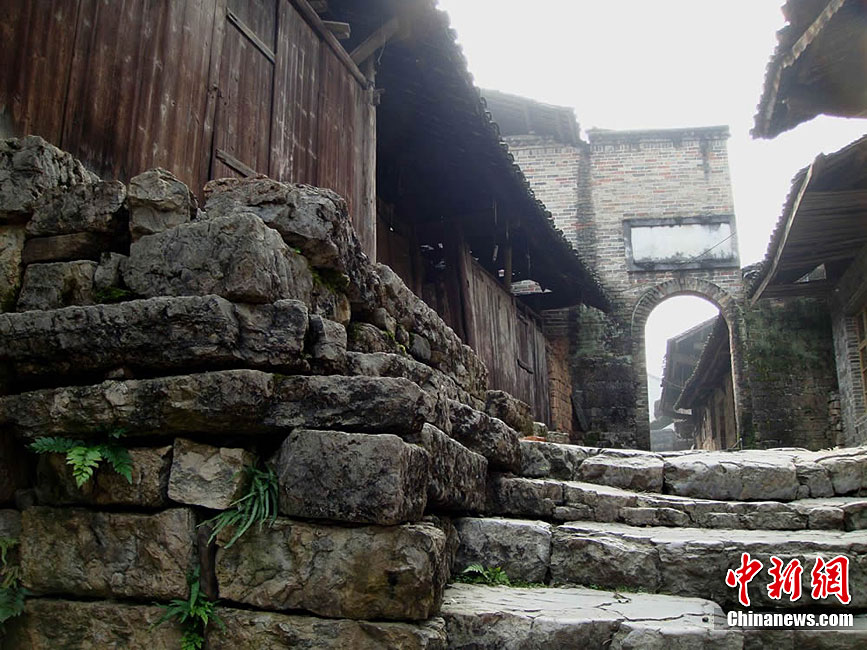 地處湘鄂渝交界處的湖南湘西自治州龍山縣賈市鄉是被譽為“原始戲劇的活化石”的茅古斯舞劇的發源地。這里是典型的土家族聚居地,居住環境原始古樸,至今保存完好的長達千余米的明清石板古街光滑剔透,沿街清一色木石結構的明末清初古建筑群鱗次櫛比,極具民族特色。楊運大 攝