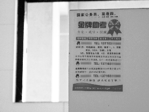 近日,廣州大部分高校均已開學(xué),同時計算機等級以及英語四六級等多項考試也被擺上眾多考生們的日程表。而就在此時,部分網(wǎng)站以及校園的公告欄,甚至是校園廁所墻上,各種惡俗小廣告也隨之現(xiàn)身,有人吹噓有各種考題及答案來源可靠,另外,出租“情侶旅店”的小廣告也悄然出現(xiàn)。記者調(diào)查發(fā)現(xiàn),絕大多數(shù)的小廣告都存在欺詐,見錢后隨即“人間蒸發(fā)”。校方提醒廣大學(xué)子,不要輕信各種有關(guān)考題出售的信息,一旦發(fā)現(xiàn)應(yīng)及時舉報,配合打擊。