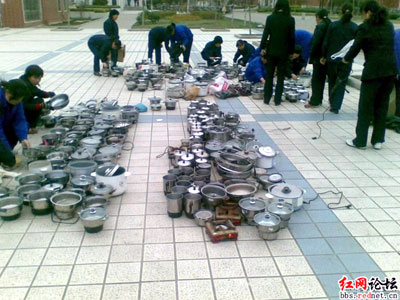 曉云指出,用熱得快燒熱水要比在天寒地凍的天氣里頂著寒風去水房排好長的隊打水方便的多:“另外學校的食堂也長期處于校內壟斷狀態,飯菜越來越難吃,份量越來越少,而價錢卻越來越高,所以我們干脆自己用電飯鍋、電磁爐開伙了,改善下生活。”