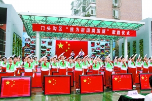 本報(bào)訊(通訊員李劍韜)昨天上午,門頭溝區(qū)大峪二小舉行了“我為祖國繡國旗”獻(xiàn)旗儀式。41面由全區(qū)3萬余名學(xué)生、教師一針一線精心繡制的五星紅旗獻(xiàn)給祖國!拔覟樽鎳C國旗”活動(dòng)歷時(shí)97天,3萬多名學(xué)生、教師和家長(zhǎng)積極參與了國旗的繡制。41面國旗,共計(jì)1300萬針,用線總長(zhǎng)達(dá)15萬米。這根15萬米長(zhǎng)的紅線,足以把北京的最高峰靈山和祖國的心臟天安門緊緊聯(lián)在一起。