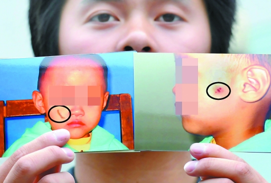可10月20日發生的一件事,徹底激怒了小徐夫婦。那天,小徐去接女兒回家,發現女兒臉上竟然有三個血痕,一看就知道是小孩的牙印!拔耶敃r真是氣不打一處來,孩子送到托兒所本來是買個放心,可現在卻弄成了這樣!
