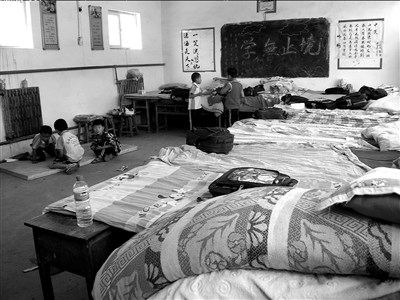 考慮到安全問題,事發(fā)后,在校住宿的十余名學(xué)生被轉(zhuǎn)移,臨時(shí)安置在教室內(nèi)過夜。截至昨晚記者發(fā)稿時(shí),孩子們?nèi)匀恢荒茉诮淌覂?nèi)拼課桌當(dāng)床過夜。