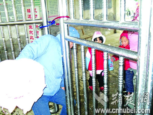 荊楚網(wǎng)消息 (楚天都市報) (特約記者楚雄 通訊員東風(fēng))昨日上午,天門多祥鎮(zhèn)中心小學(xué)校門被建筑商鎖上,致千余學(xué)生無法進(jìn)校。無奈之下,老師只得組織學(xué)生按順序從門縫中擠進(jìn)校園上課。等最后一名學(xué)生進(jìn)校時,時間已過去一個多小時。