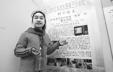 華龍網訊(記者 紀文伶)“請問你經常偷菜嗎?”10歲的梁心怡走遍了學校、網吧、社區,將這個問題重復了數百遍。她可不是閑著沒事干。渝中區解放東路第三小學五年級的這個小姑娘花費半年多時間發出300份問卷調查,本月寫下近6000字論文——《小學生參與流行游戲“偷菜”的情況調查》,在我市25屆青少年科技創新大賽中獲創新大獎。