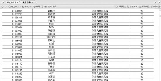 真的和去年一樣嗎?記者今天上午在浙江教育考試網(wǎng)查閱了該省2008年普通高校招生政策加分考生名單公示公告,緊挨其下還有一份“浙江省2008年獲得國家二級運動員(含)以上稱號測試認定合格名單公示”。
