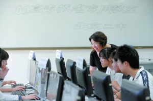 昨日,北京二中對學生進行了最后一次填報輔導,學生用報名號測試了剛剛開通的填報系統。據老師介紹,盡管多數學生不在校填報,但學校還是可以通過后臺監控系統了解報考情況。學生是否成功提交志愿、照顧政策是否填報等信息,都可以在后臺監控。后臺監控系統“可看不可改”的設計,保證了其安全性。