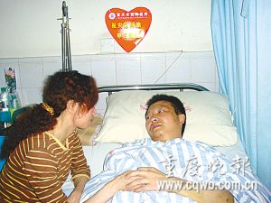 地震被埋的北川中學教師楊漢德,病床上一直自責沒能參與搶救自己的學生。“到醫院兩天了,他一直不愿說話!弊蛳挛,西郊醫院外二科病房,院長陳和平為傷員楊漢德遞上了慰問金,守候在病床前的妻子張鈺,看著表情木然的楊漢德,也不禁黯然神傷。