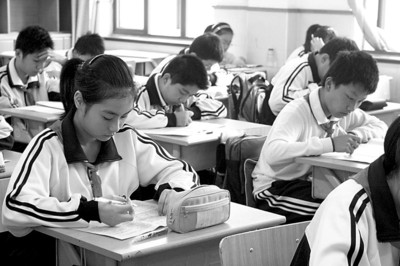 今天上午8:00,靜安區(qū)愛國學(xué)校七(3)班教室內(nèi),正在進行期中考試。蔣秘文手中的試卷有些與眾不同,她答的是稍難些的B卷。在七(3)班,像小蔣一樣考B卷的還有4位同學(xué),其余近2/3學(xué)生主動選擇了難度適中的A卷。今年期中考試,該校初中年級推出創(chuàng)新做法,答哪一類卷,由學(xué)生自選,老師加以指導(dǎo)。學(xué)校在語、數(shù)、外三門功課中采取“分層考試”,分別設(shè)計了兩套難易程度不同的A、B卷,學(xué)生可根據(jù)自己的學(xué)習(xí)能力狀況自主選擇不同層面的試卷。