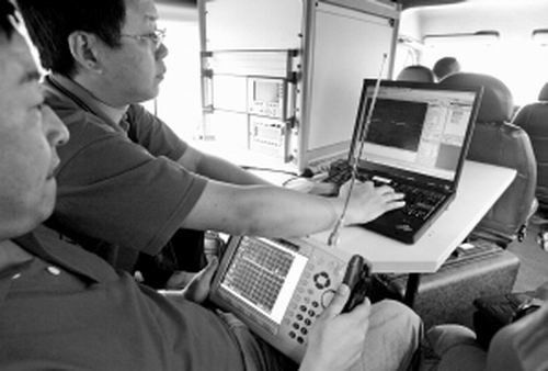 沈莉介紹,此次除了公安機關(guān)用“電子狗”探測外,還啟用了無線電探測儀,它能將信號源進行屏蔽。市信產(chǎn)部相關(guān)人士介紹,他們此次共出動了6個車組,每個考區(qū)至少有一輛無線電探測車。