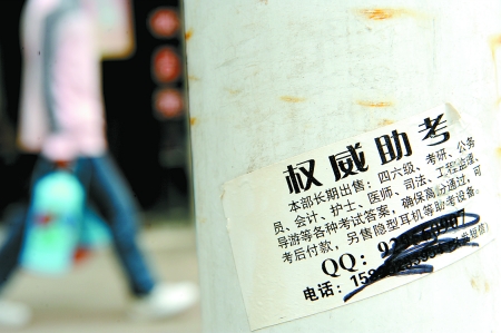 “作弊,隨著科技的發展在逐漸升級。”小杰說,按他學長們的說法,利用電子產品作弊,大約在1995年便出現了,那時,大家多用BP機作弊。