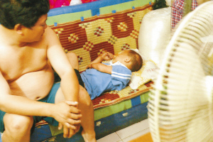 16歲的大女兒也已起床。對大女兒,陳彩霞很放心,因為她聽話、懂事,而且已經能為家里掙錢了。讓她揪心的是9歲的兒子淘淘。和名字一樣,兒子淘氣得讓她有時候覺得很窩火。這時候,淘淘還蜷在沙發上睡覺,那是他的床。