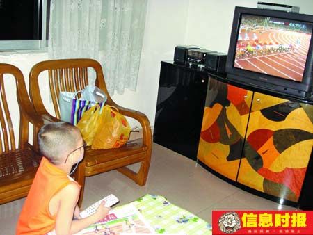 奧運(yùn)雖好看,可居住在星匯園的張女士這兩天卻有點(diǎn)擔(dān)心了。開學(xué)就讀五年級(jí)的兒子軒仔是個(gè)體育愛好者,這個(gè)暑假為了看奧運(yùn),連之前一直吵著的云南十日游都放棄了:從奧運(yùn)開幕至今,軒仔每天唯一的活動(dòng)項(xiàng)目就是盤在沙發(fā)里抱著遙控器調(diào)來調(diào)去,從一早的《朝聞天下》看到晚上十一點(diǎn)多鐘的《全景奧運(yùn)》,中途去趟洗手間軒仔都會(huì)一路小跑。