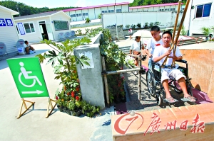 在北川中學,一條用簡易木板搭建起來的殘疾人過道已經開始使用。曹景榮 攝