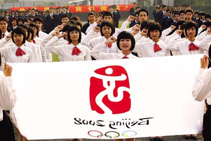 10日下午,海口奧運班的同學(xué)宣誓為北京奧運努力學(xué)習(xí),做出自己的貢獻(xiàn)。 本報記者 黃一冰 攝