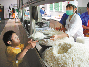 半小時后,李浩出現在食堂,花五毛錢買了兩個饅頭。由于食堂窗口差不多與他身高一般高,李浩要踮著腳,然后舉著飯卡才能順利在讀卡機上劃卡。“饅頭很軟很好吃!”坐在食堂細嚼慢咽后,他便趕到預定位置集合,準備參加開學典禮。