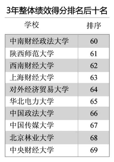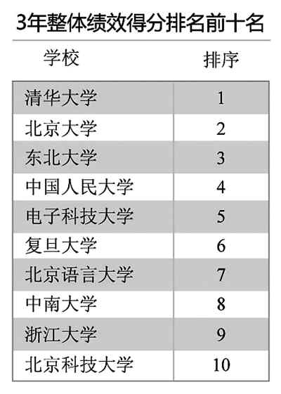數(shù)據(jù)統(tǒng)計(jì)顯示:有近半數(shù)高校過去3年“投入多,產(chǎn)出少”;另有29所高校“產(chǎn)出高于投入”;還有7所高校投入和產(chǎn)出的排名一致,“投入產(chǎn)出相當(dāng)”。整體績(jī)效得分前3名的高校分別是清華大學(xué)、北京大學(xué)、東北大學(xué)。